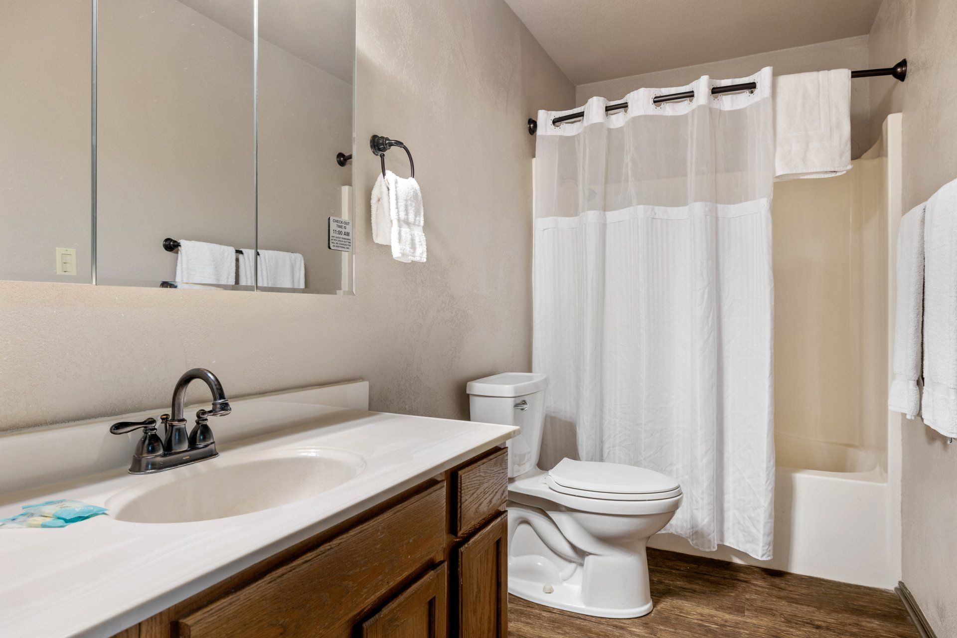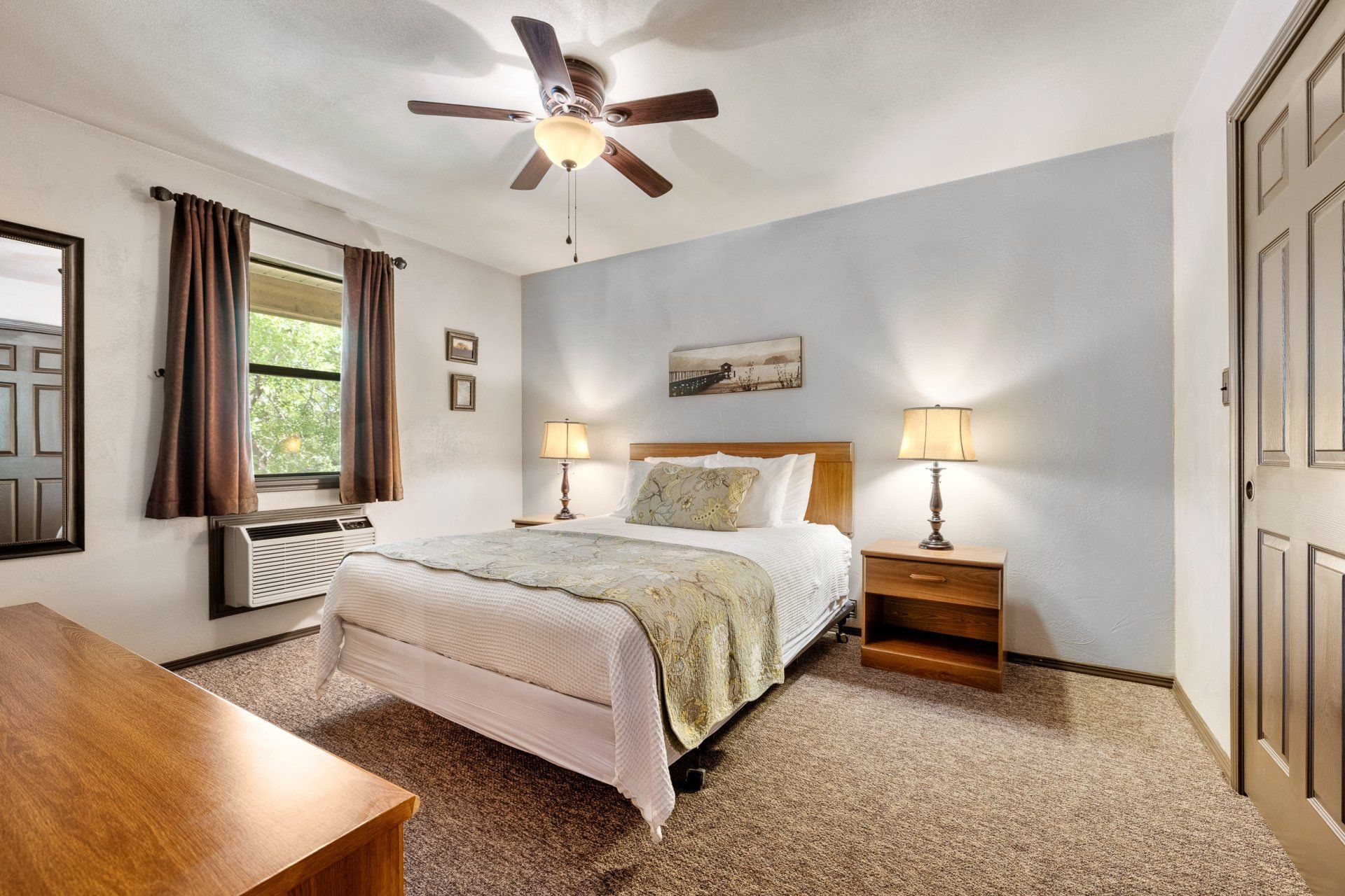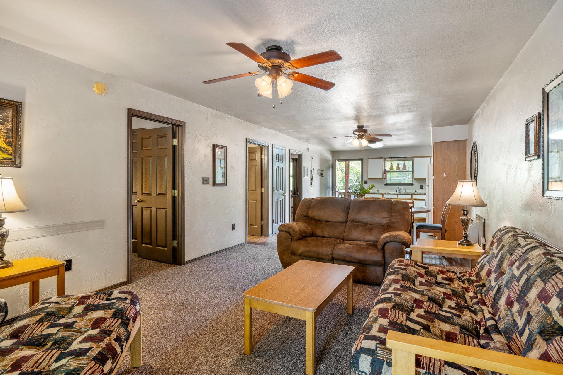 The one bedroom condos sleep up to 4 people with a queen bed in the bedroom and two full-sized futon sofas/beds in the living room. Each condo has a private balcony that overlooks the lake.