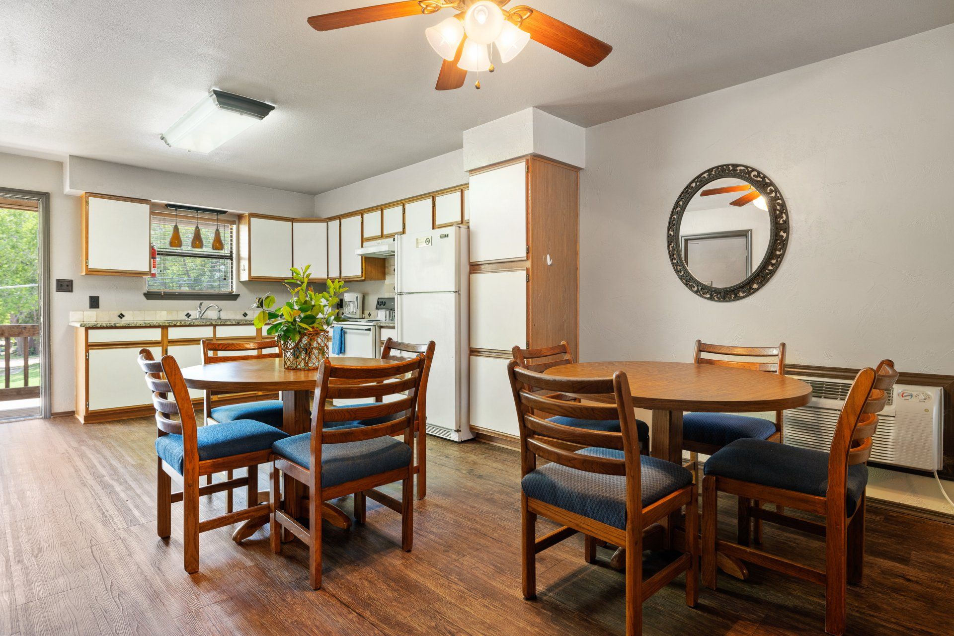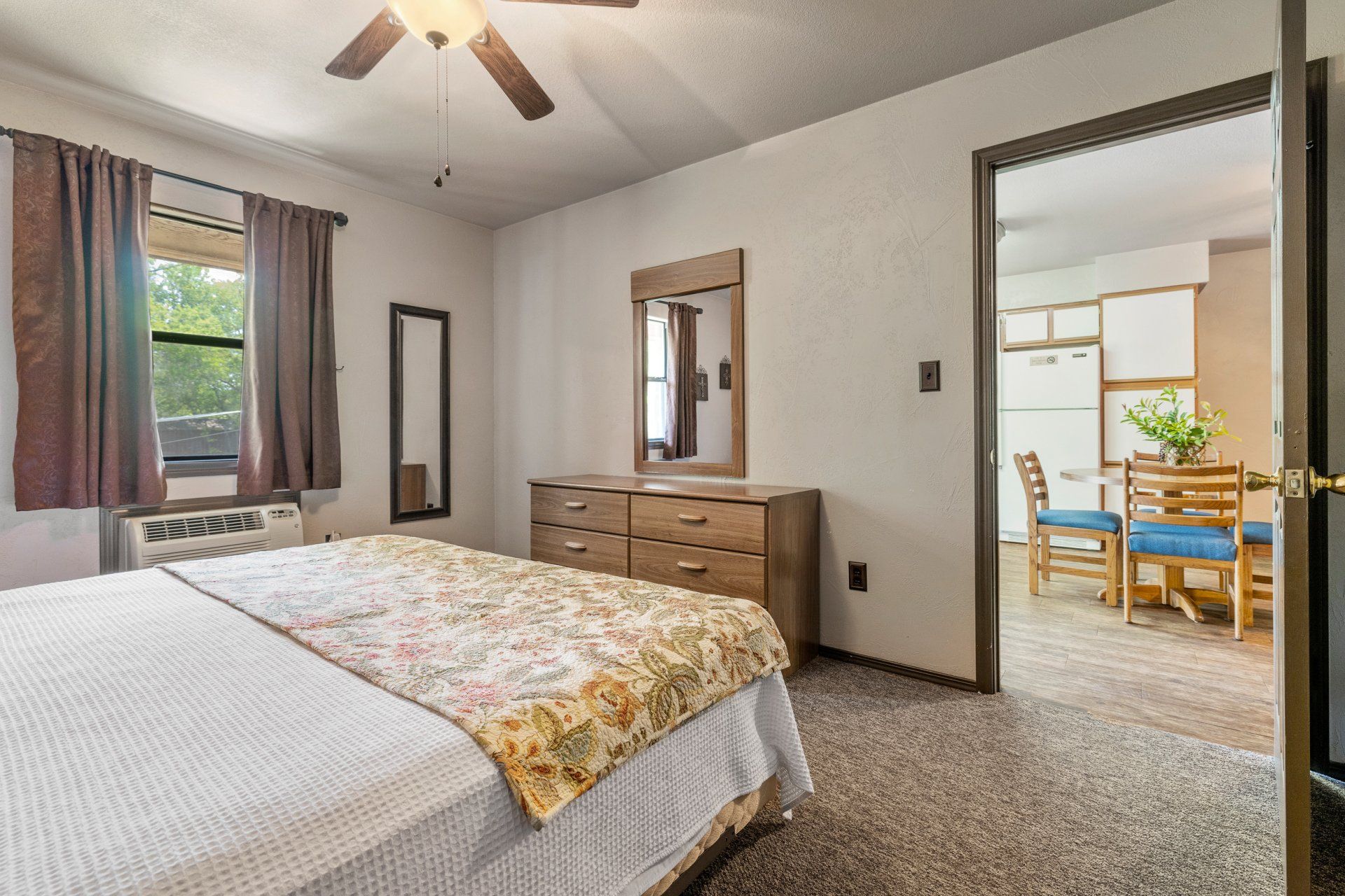 Our lakefront condos are a great way to spend some time at the lake. They offer all of the conveniences of home and the fun of being at the lake. There are 9 one bedroom, one bath units and 3 two bedroom, one bath units. All have full sized, completely furnished kitchens, a dining area, a large living room with a TV, heat and A/C, a full sized futon couch, queen sized beds, and lakeside grills. All linens are furnished except for swimming towels.