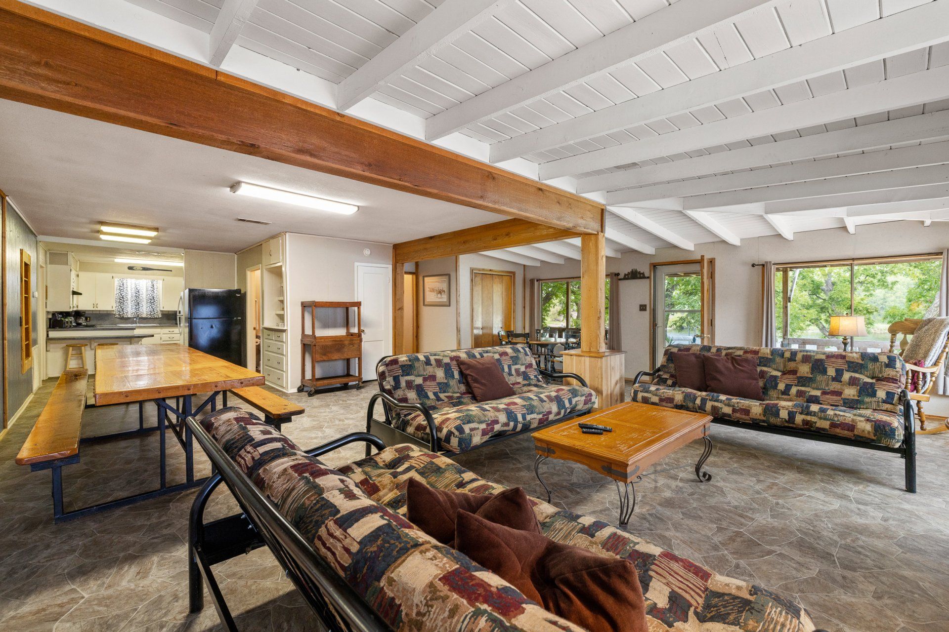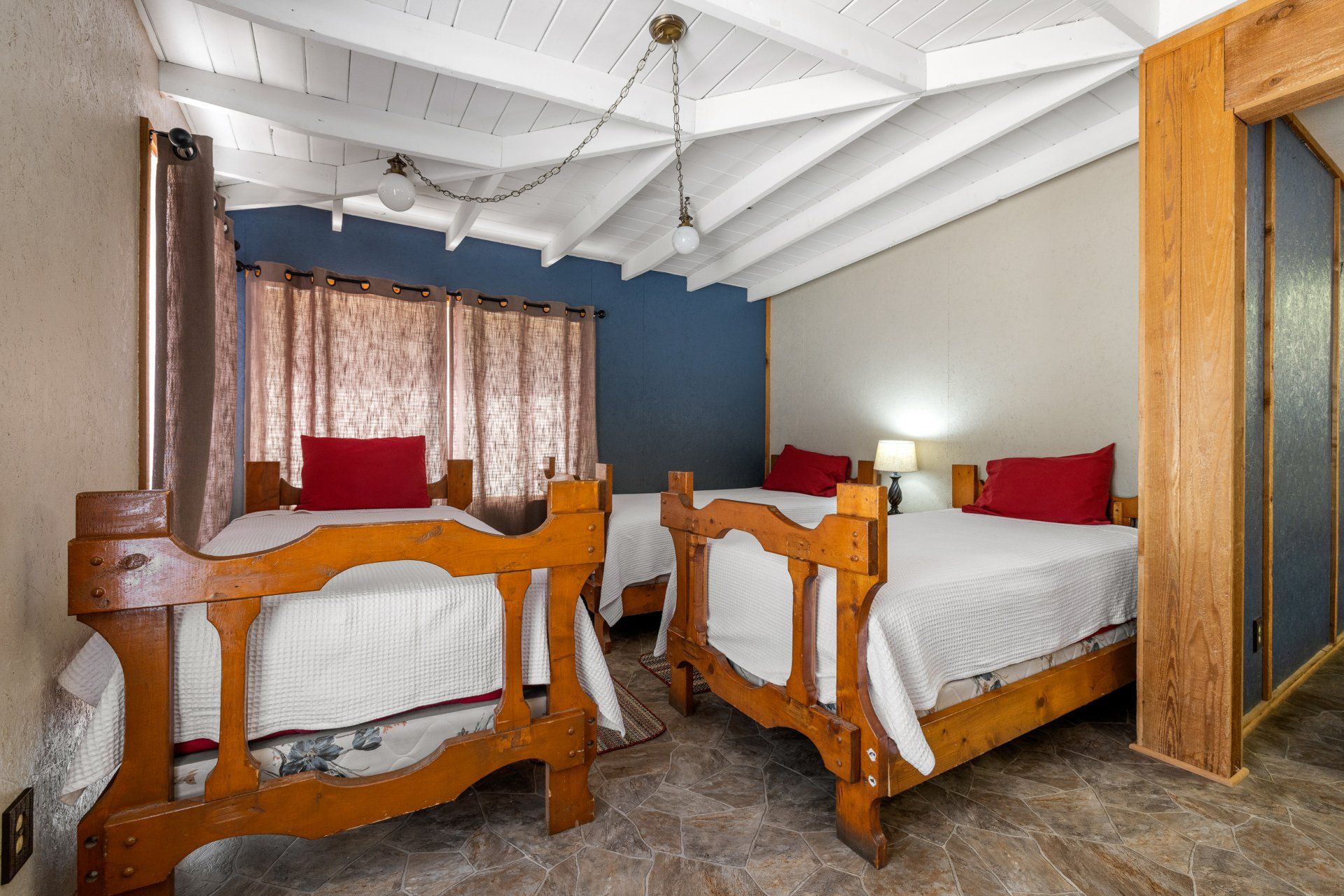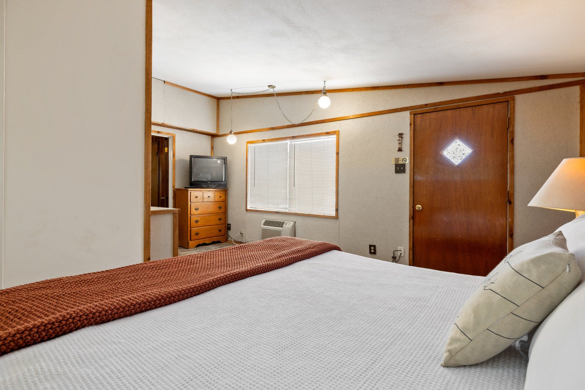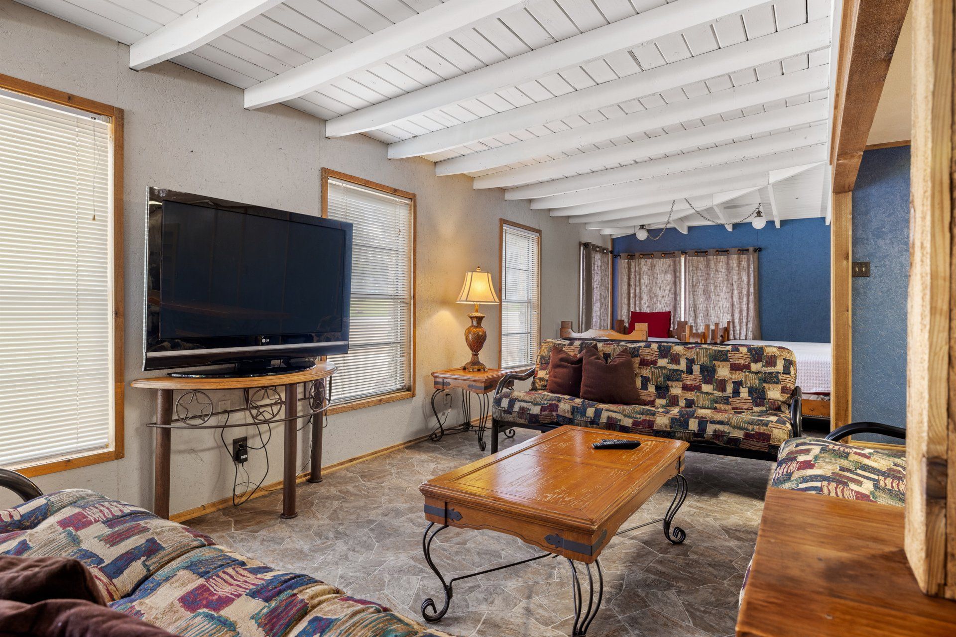 Our most popular unit because of the view of the water separated by lush green grass. This unit has 3 bedrooms with either king or queen beds and the large open living/dining/kitchen has 3 double futons and a nook with three twin beds for a bunk house feel.
